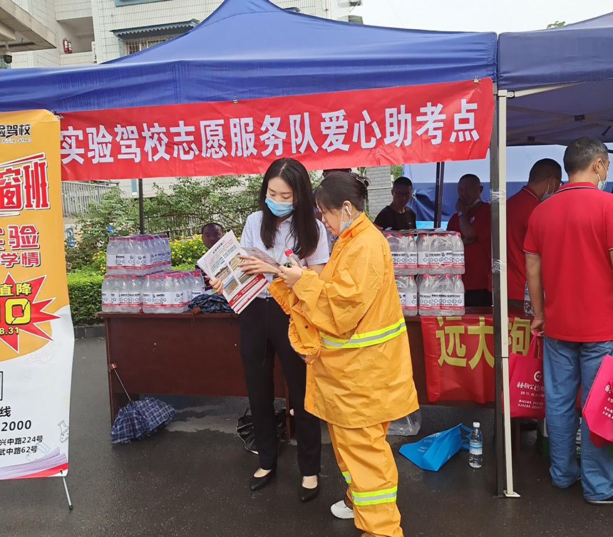 “叔叔,別緊張,相信孩子一定能夠超常發(fā)揮考出好成績……”,在實(shí)驗(yàn)高中考點(diǎn),為緩解陪考家長焦慮緊張的情緒,志愿者邀請(qǐng)家長們到休息區(qū)休息,介紹公司駕培特色優(yōu)勢(shì)和班型設(shè)置,并與他們交流陪考經(jīng)驗(yàn),幫助舒緩心理壓力。