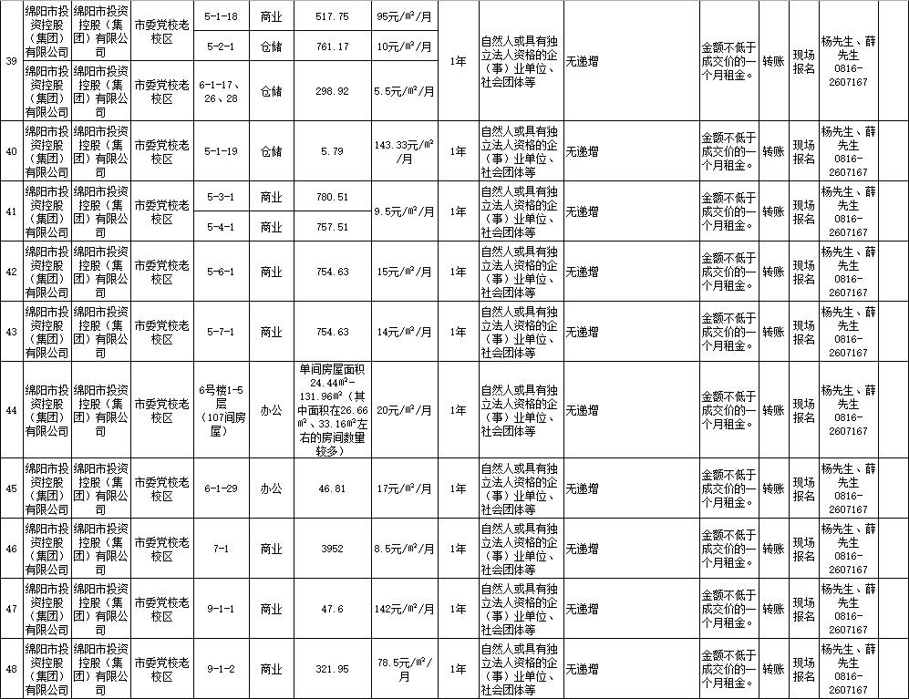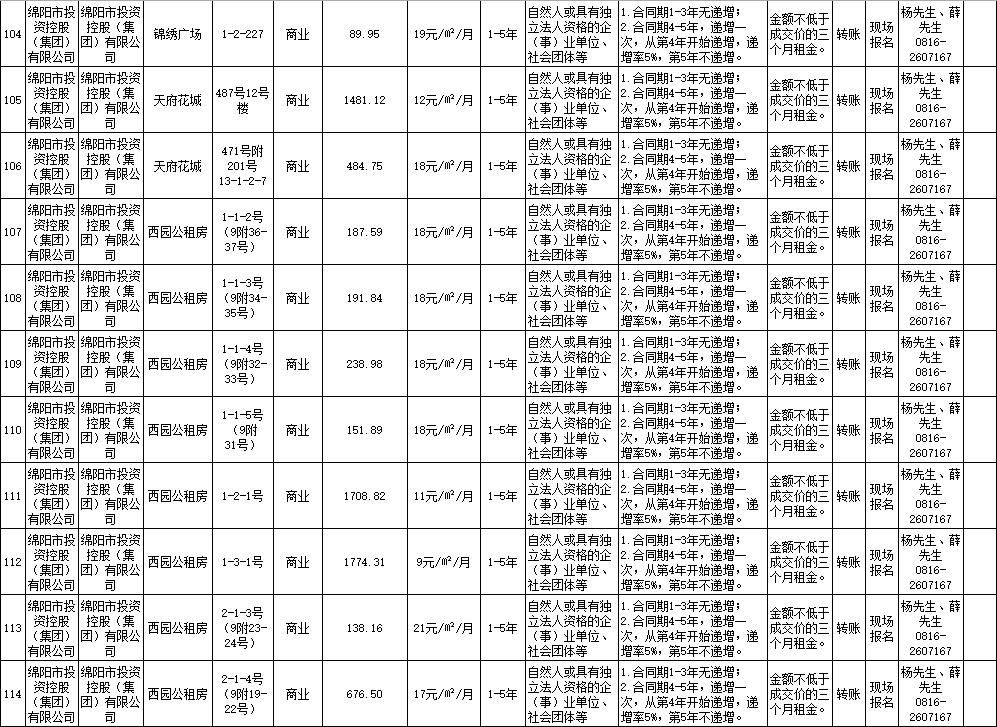 綿陽(yáng)市綿投商業(yè)運(yùn)營(yíng)管理有限責(zé)任公司資產(chǎn)出租公告